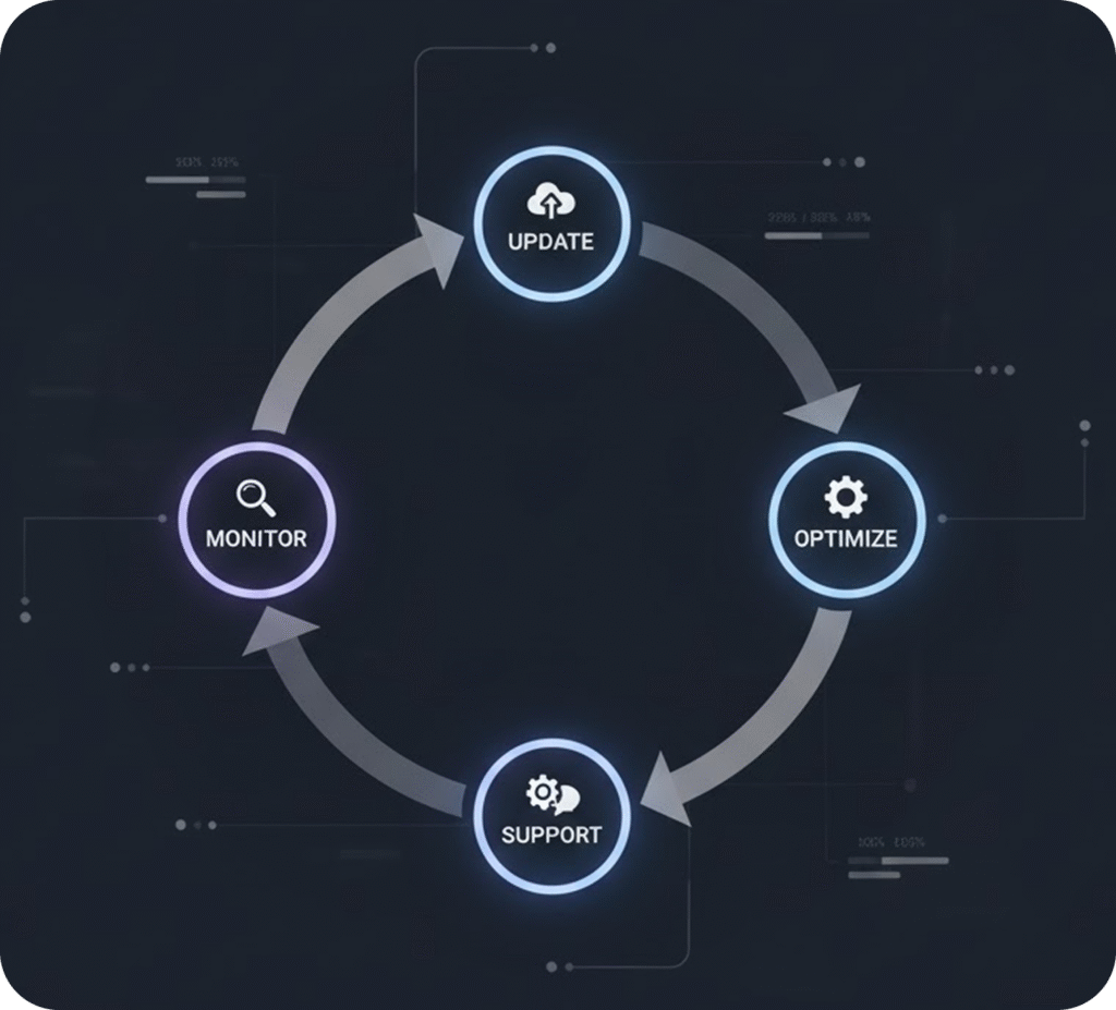 We deliver structured maintenance programs that include version upgrades, bug resolution, data backups, and continuous testing. Our proactive approach keeps your applications aligned with evolving technologies and user expectations.