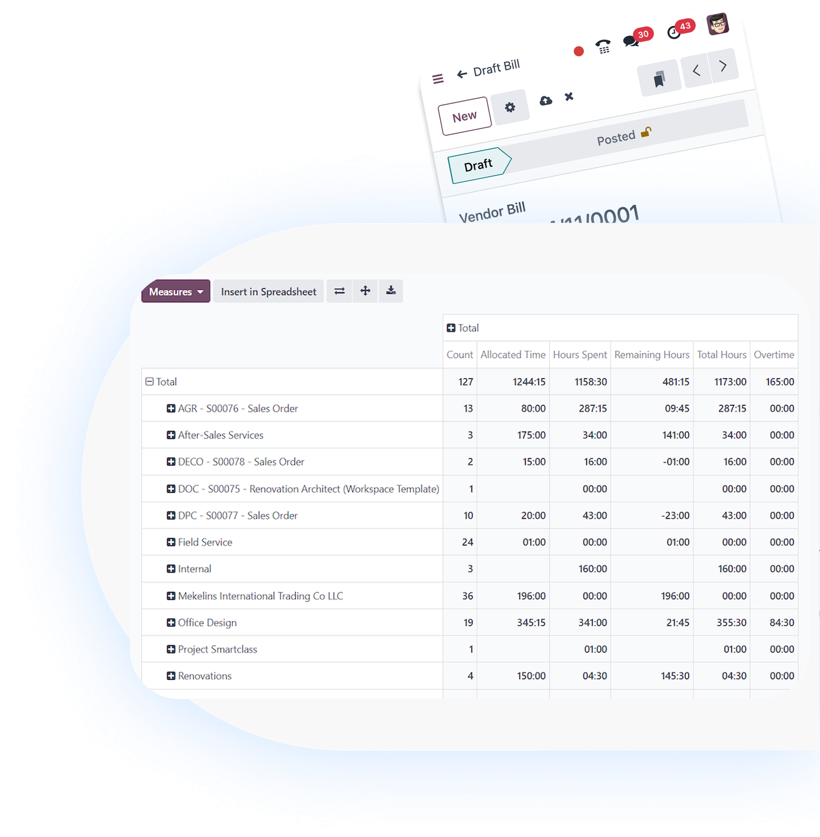 Measure supplier performance with dynamic dashboards and advanced reports. Track delivery delays, discounts, and contract profitability with built-in analytic accounting.